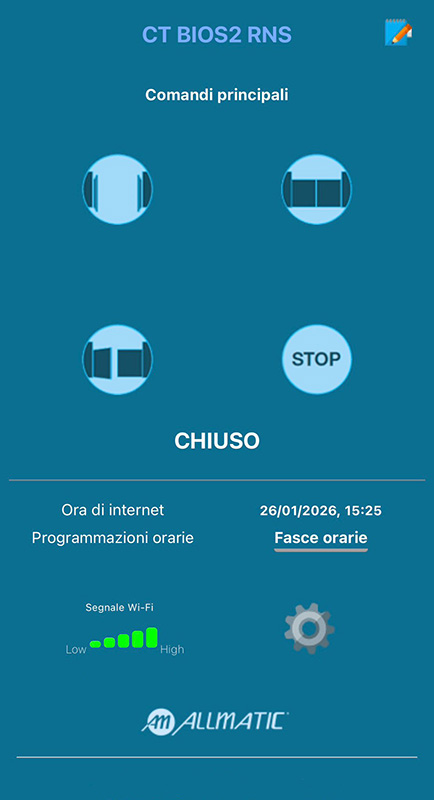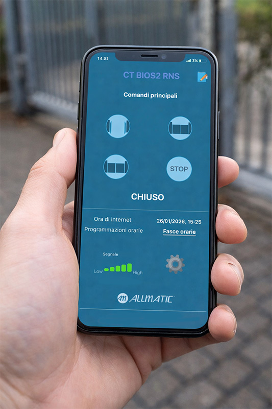 Il dispositivo consente di comandare l’automazione, monitorare lo stato della centrale, configurare i parametri di funzionamento e gestire le impostazioni operative in modo semplice, sicuro e completamente digitale, senza interventi diretti sull’elettronica dell’impianto.